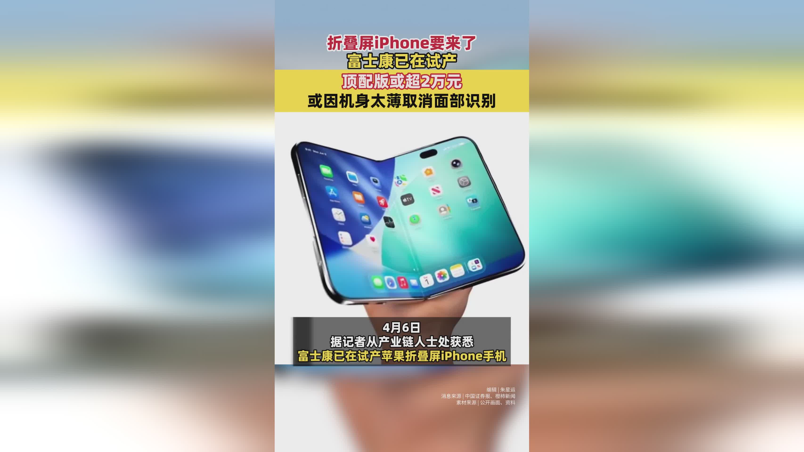 折叠屏iPhone试产进行时,富士康助力顶配版或破2万,轻薄设计或舍面部识别