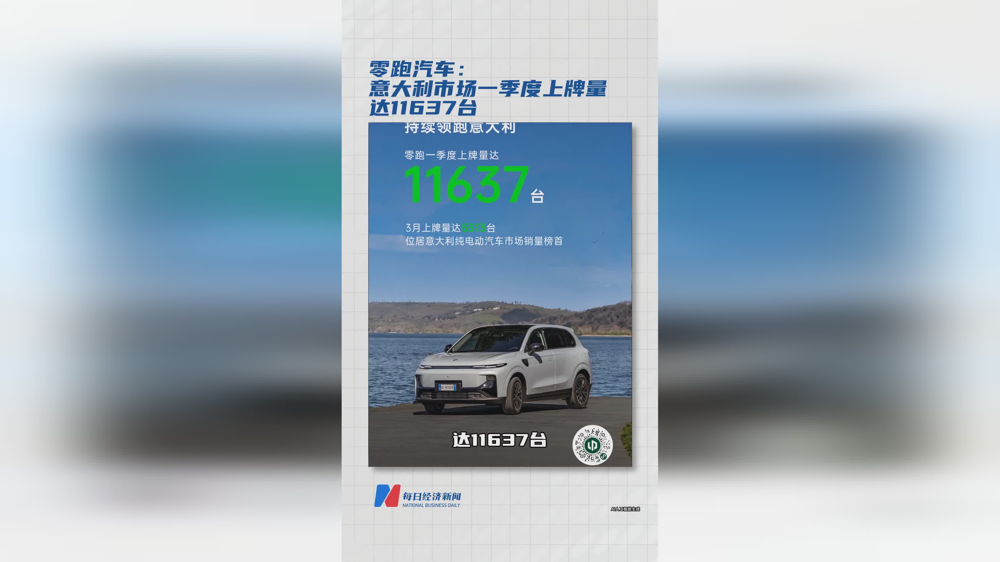零跑汽车意大利市场一季度销量突破1.16万台 创欧洲市场新纪录
