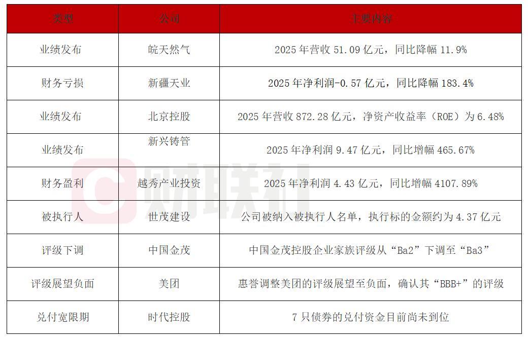 债市动态聚焦|美团评级展望下调至负面;多家发债主体2025年业绩呈现分化态势