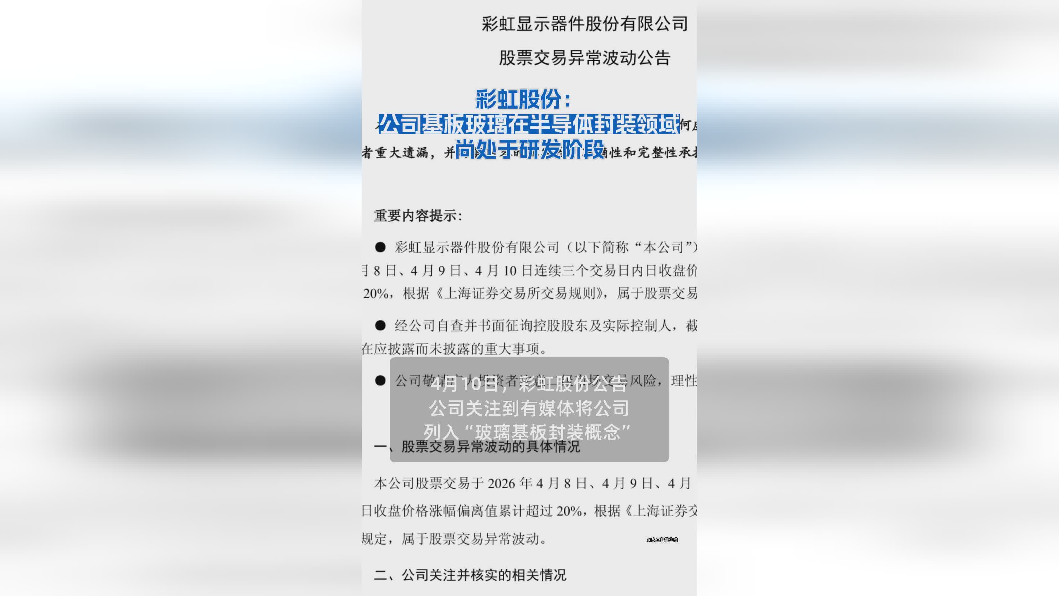 彩虹股份:基板玻璃半导体封装应用研发尚在初期