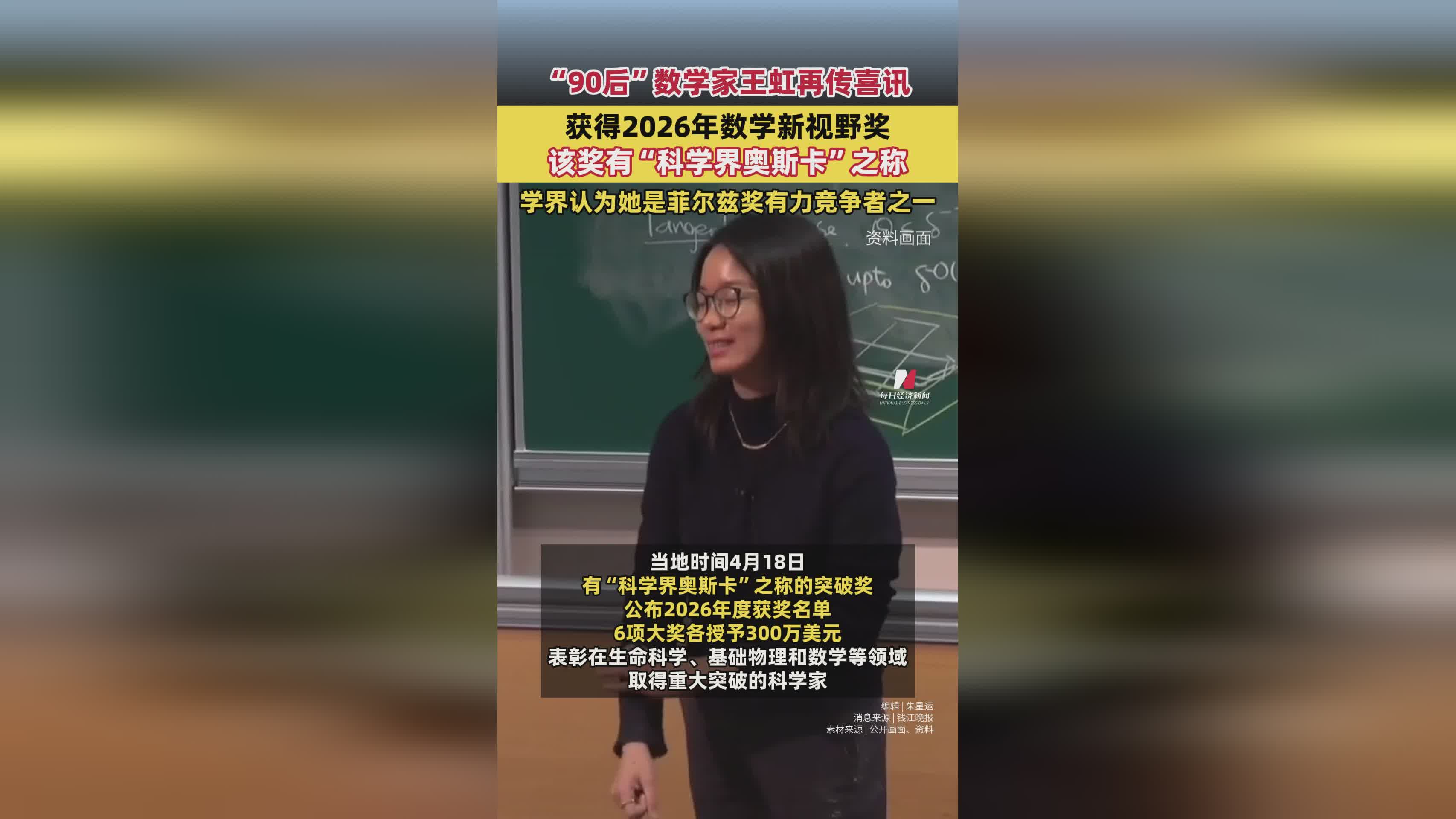 徽声在线:90后数学新星王虹斩获2026年数学新视野奖,被视为菲尔兹奖热门人选