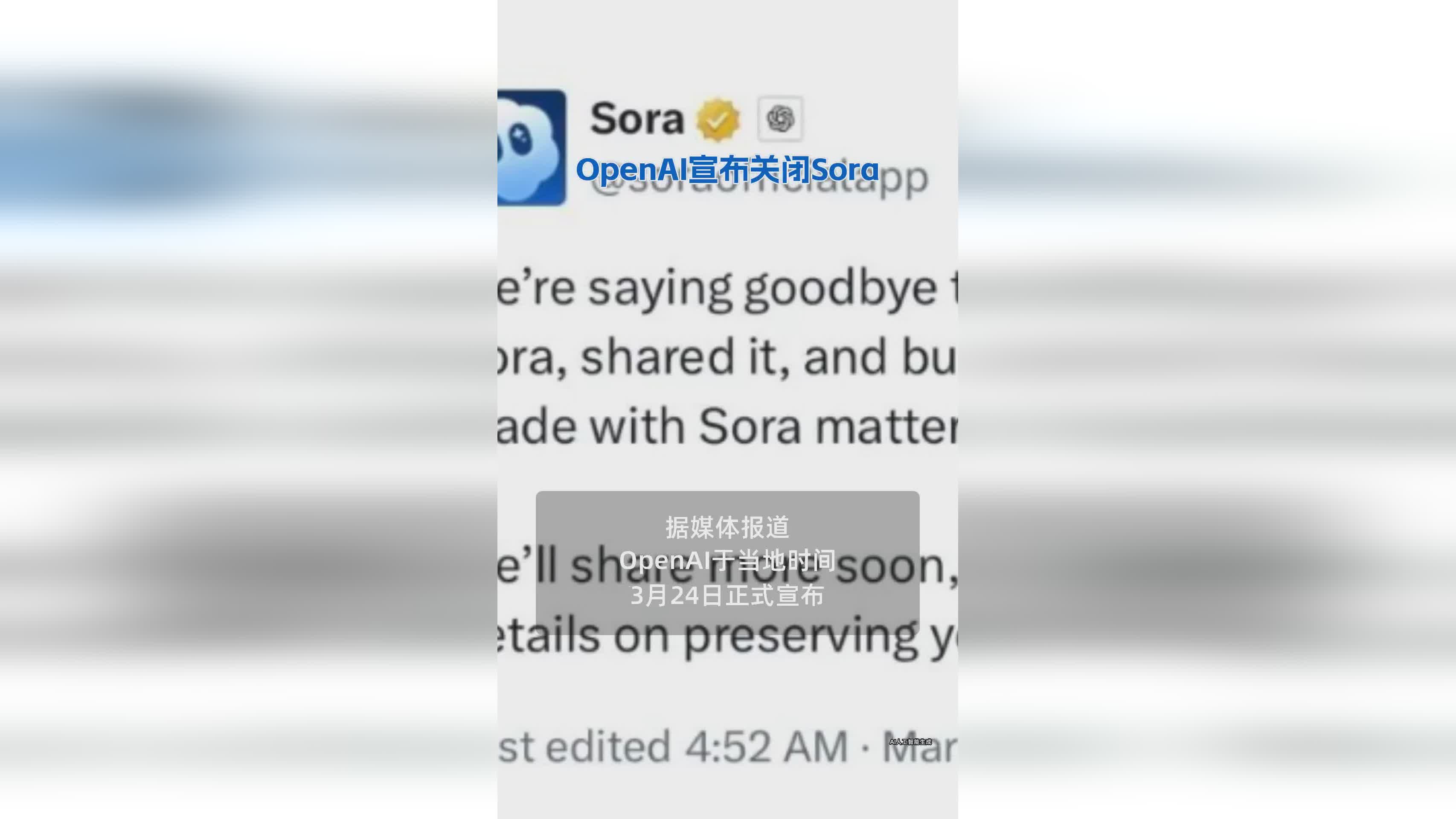 OpenAI宣布关闭Sora项目引关注