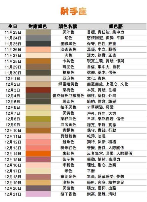 以上就是关于射手座幸运颜色的详细解读,以及射手座幸运颜色背后所蕴含的寓意。希望这些信息能够帮助您更好地了解射手座,也希望这篇文章能够对您有所帮助。
