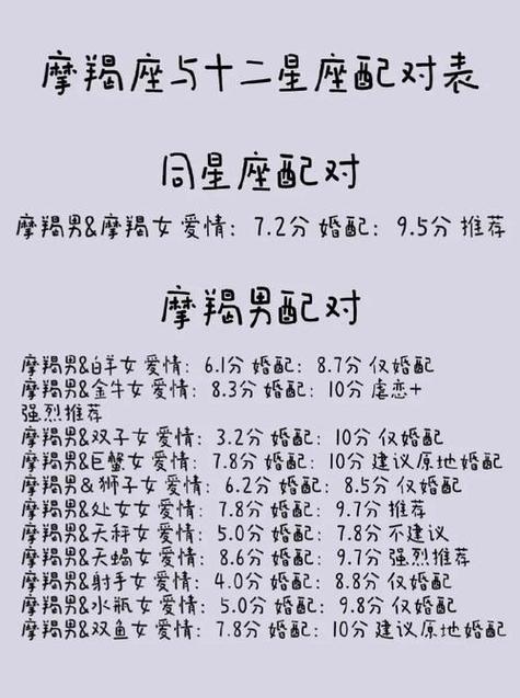 而90%协调的星座则包括双鱼座和天蝎座。虽然与摩羯座存在一定的差异,但他们的深情与执着往往能够打动摩羯座的心。