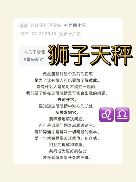 以上就是关于狮子座与天秤座相配性的深入探讨。希望这些内容能够帮助大家更好地理解这两个星座之间的爱情关系,为大家的感情生活提供一些有益的参考。