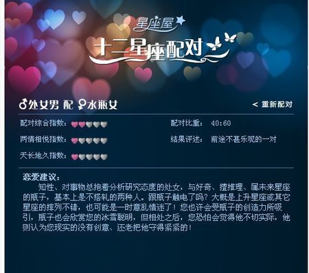 恋爱建议:处女座男生与水瓶座女生在配对指数上虽然看似不高,但并不意味着他们无法在一起。感情的开始往往源于彼此之间的吸引和欣赏。处女座男生可能觉得水瓶座女生有趣、平易近人且见多识广;而水瓶座女生则可能觉得处女座男生与众不同、有思想深度。然而,随着相处的深入,他们可能会发现彼此在性格上存在着较大的差异和挑战。