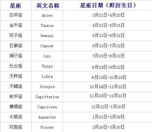 那么,十二星座具体是如何划分的呢?它们分别是: