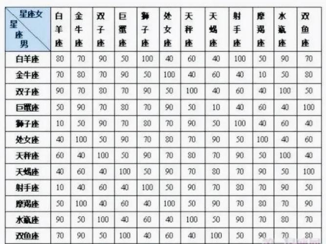 2、12星座男女配对表:十二星座中各个星座的十二星座配对表全览