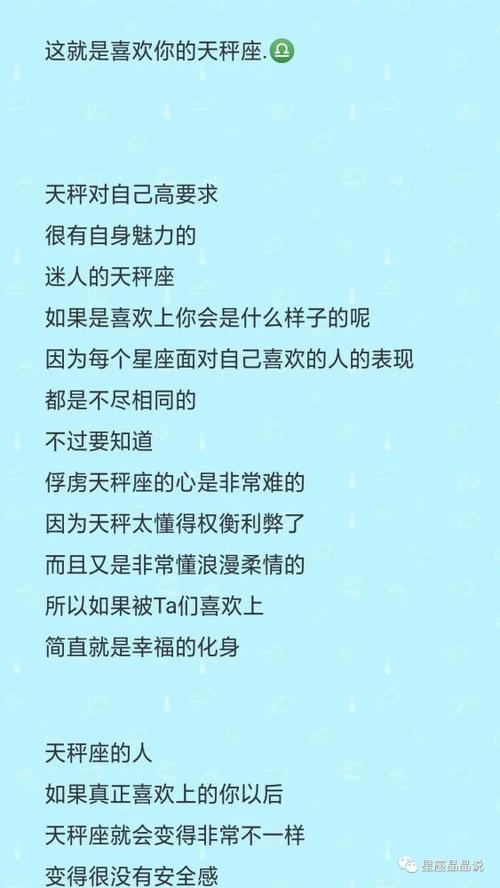 以上就是关于天秤座暗恋一个人时的表现,以及他们放弃一个深爱之人时可能展现出的举动的详细分析。希望这些内容能够帮助大家更好地洞察天秤座的情感世界,理解他们的行为背后的深层含义。看完本文后,如果你对天秤座的情感表现有了更深入的了解,不妨分享给身边的朋友,让更多人一起受益。