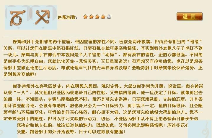 若与温柔体贴、顺从听话的巨蟹座女性携手共度,射手座男性的感情生活将充满温馨与诗意,和谐美满。