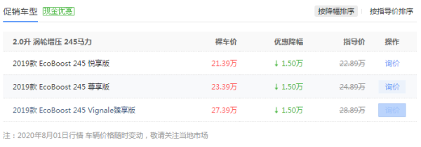 根据最新数据,福特金牛座2023款入门级的EcoBoost 245 悦享版目前裸车价为31.39万元,而顶配的EcoBoost 245 Vignale臻享版裸车价则为27.39万元。尽管目前的优惠力度不算很大,但考虑到金牛座在配置、空间以及动力方面的综合表现,其性价比仍然相当可观。