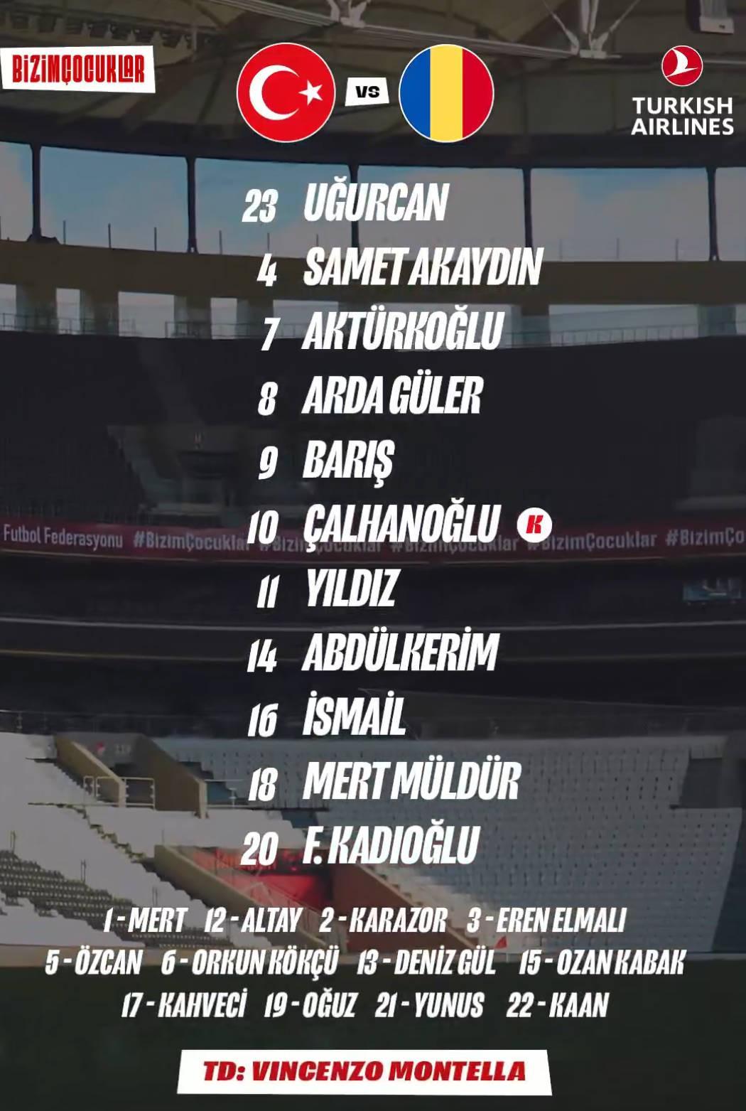 土耳其vs罗马尼亚首发揭晓:居莱尔、伊尔迪兹领衔,布尔克在列