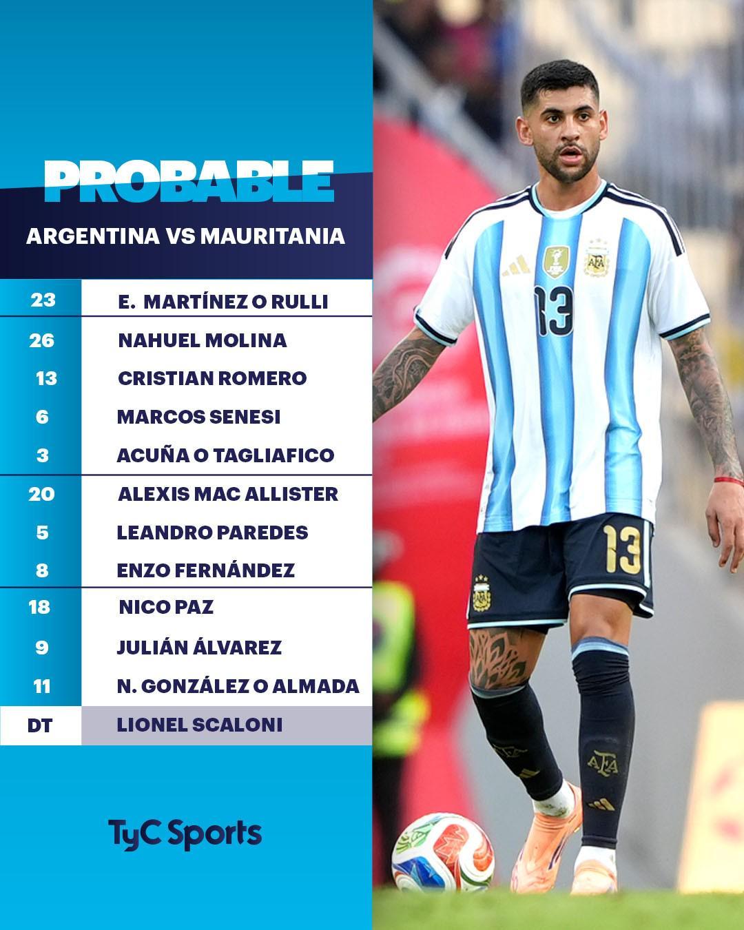 北京时间3月28日清晨7点15分,阿根廷国家队将迎来一场国际友谊赛,对手是来自非洲的毛里塔尼亚队。在比赛即将打响之际,徽声在线根据阿根廷权威媒体TyC的报道,对本场比赛阿根廷队可能派出的首发阵容进行了深入分析。