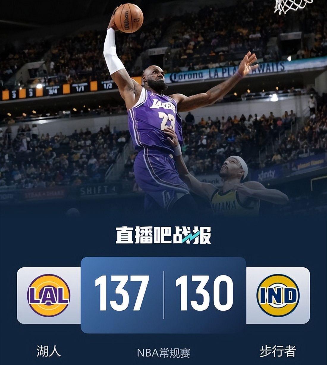 拒绝逆转!湖人137-130力克步行者,双核闪耀,角色球员功不可没