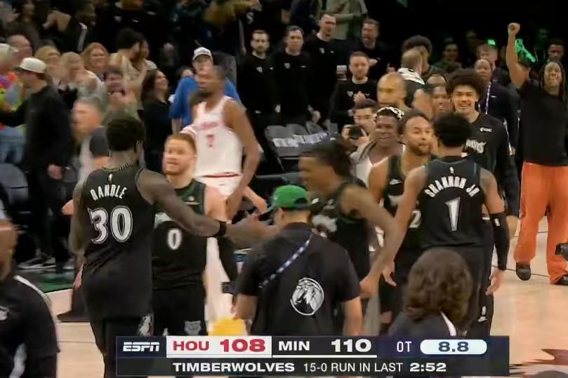 惊心动魄!火箭加时先声夺人,森林狼15 - 0惊天逆转创历史