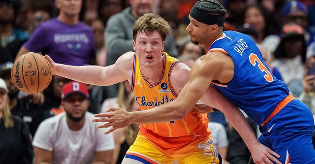 北京时间3月27日,NBA常规赛激战正酣,夏洛特黄蜂队坐镇主场迎战近期状态火热的纽约尼克斯队。经过四节鏖战,黄蜂队以114-103的比分力克对手,不仅成功捍卫了主场荣誉,还一举斩获了宝贵的5连胜。此役,黄蜂队多点开花,克努佩尔发挥全面,贡献了26分、11个篮板以及8次助攻的准三双数据;鲍尔同样表现出色,砍下22分、5个篮板和6次助攻;米勒和迈尔斯-布里奇斯也分别有21分8篮板和17分5篮板的入账;怀特则贡献了17分,为球队的胜利添砖加瓦。