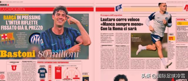 目前,西媒、意媒都在头版炒作巴斯托尼的转会。至于具体转会费是8000万还是6000万,3月份报道出的数字基本都没什么参考价值。