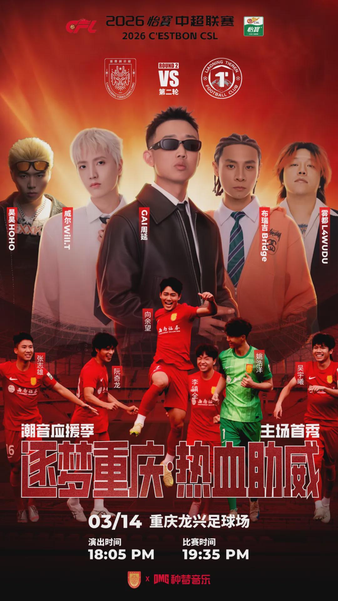 但我作为足球迷和嘻哈爱好者,看到铜梁龙海报上歌手头像大于球员头像时,也觉得有些过分。毕竟足球运动场景才是主角,歌手占据海报中央是否喧宾夺主?