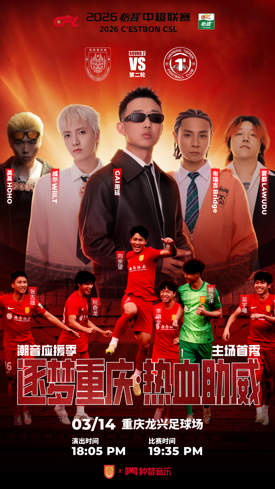 不过,铜梁龙主场赛事有一个独特之处,那就是加入了说唱表演。今年,铜梁龙与种梦音乐公司达成了合作,种梦旗下的歌手将在主场赛事中登台献唱。像这次主场揭幕战,就有一线说唱歌手GAI、布瑞吉等领衔表演。
