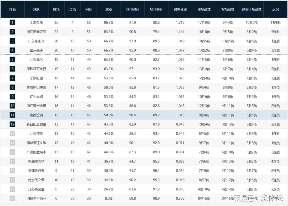 此役过后,上海男篮客场大胜山西队,实现赛季三杀对手,取得11连胜的同时,胜场数达到26场,积分高达56分,领跑积分榜。而山西男篮则遭遇两连败,虽然目前排名仍在季后赛区域,但此前建立的领先优势已被逐渐蚕食。