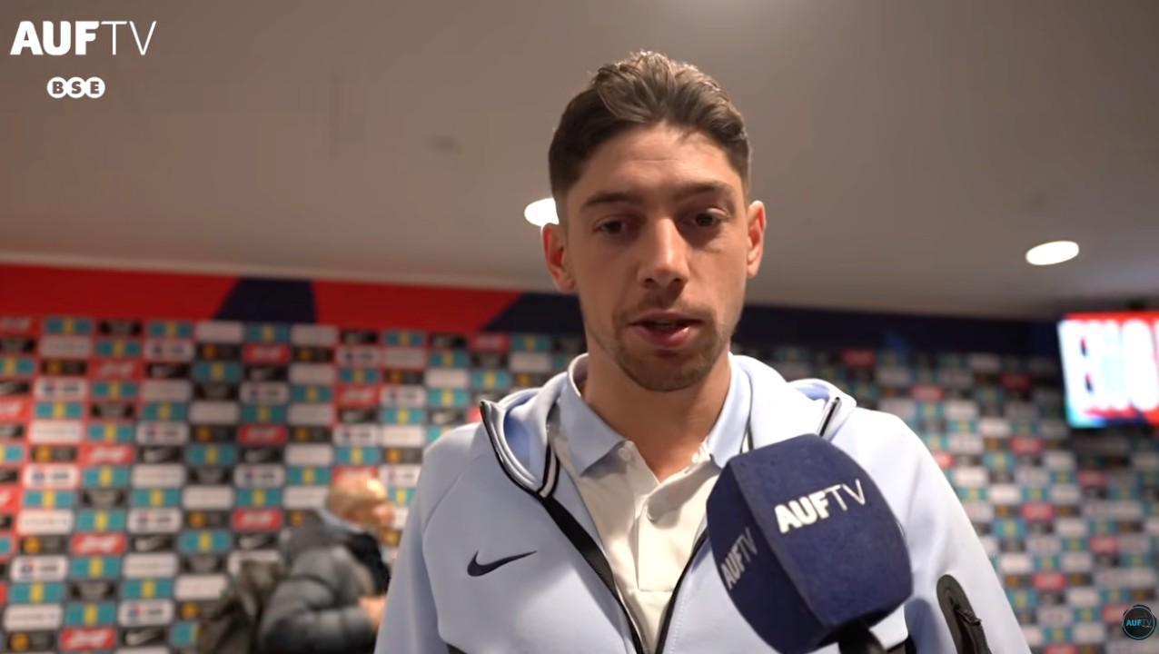 在乌拉圭与英格兰的友谊赛中,双方以1-1的比分握手言和,其中打入关键一球的巴尔韦德在赛后接受了乌拉圭国家电视台的深度访谈。