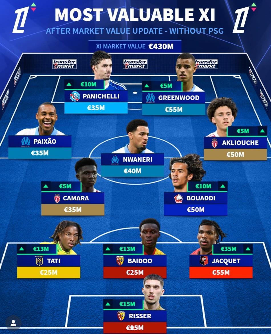 法甲最贵11人阵容揭晓:雅凯格林伍德领衔,不含PSG球员