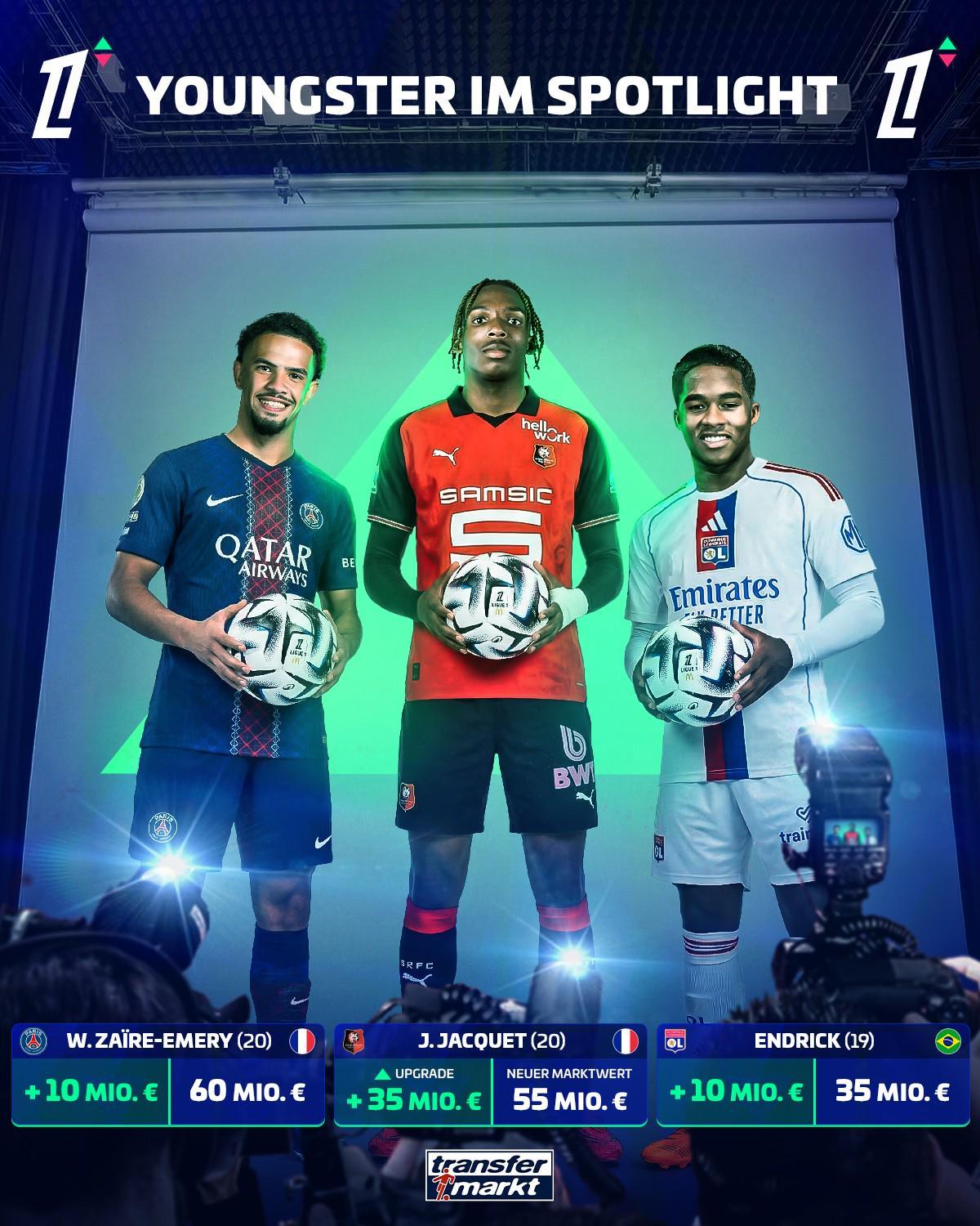 3月27日深夜,徽声在线从德国转会市场官方渠道获悉,该平台完成了对法甲联赛187名现役球员的最新身价评估。其中最引人注目的是今夏即将转会利物浦的雷恩后卫杰里米·雅凯,其身价单日暴涨3500万欧元至5500万欧元,另一位皇马外租小将恩德里克也获得1000万欧元的身价提升。