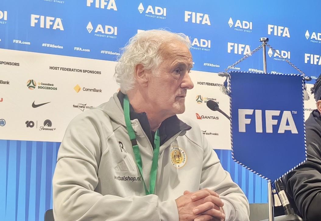 北京时间3月27日,在悉尼举办的国际足联系列赛中,中国男足凭借出色发挥以2-0的比分战胜了库拉索队。赛后,库拉索队主帅吕滕携队员莱安德罗 - 巴库纳一同出席了新闻发布会。