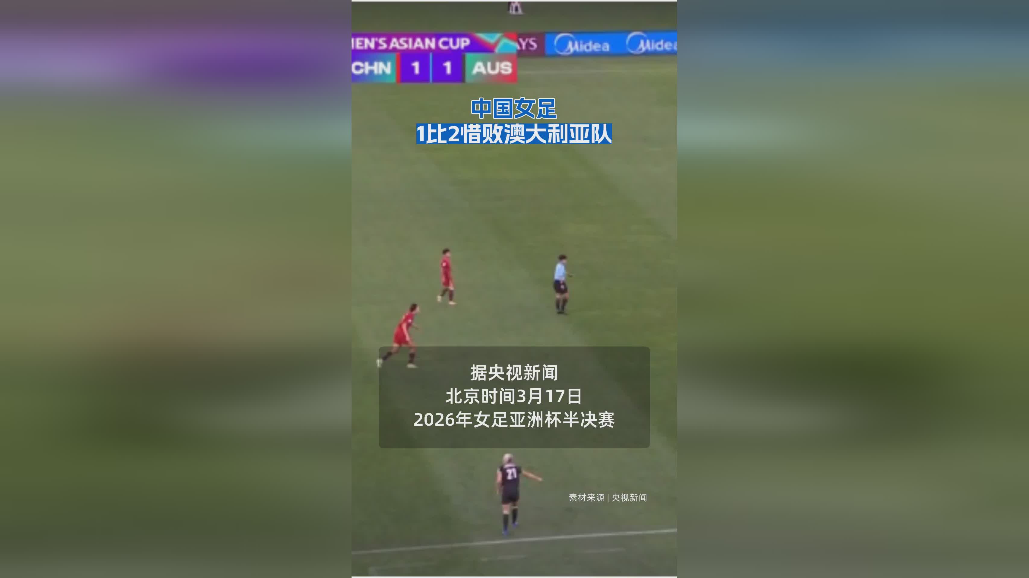 中国女足1比2憾负澳大利亚队,虽败犹荣