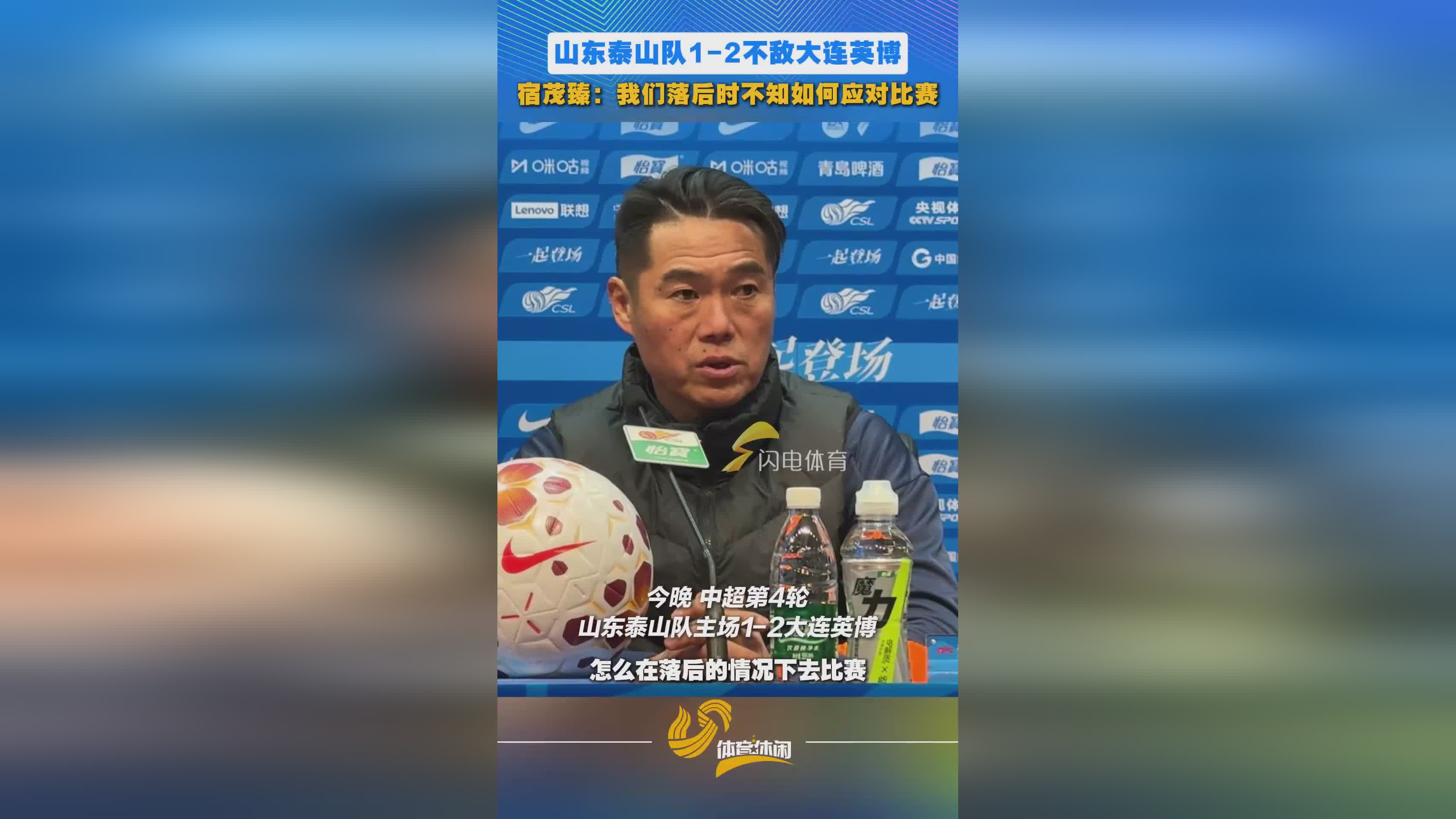 徽声在线4月4日讯 今晚,中超联赛第4轮迎来一场焦点对决,山东泰山队坐镇主场迎战大连英博。经过90分钟的激战,泰山队最终以1-2的比分不敌对手,遭遇了本赛季中超的两连败。赛后,球队助理教练宿茂臻出席了新闻发布会,对比赛进行了全面复盘。