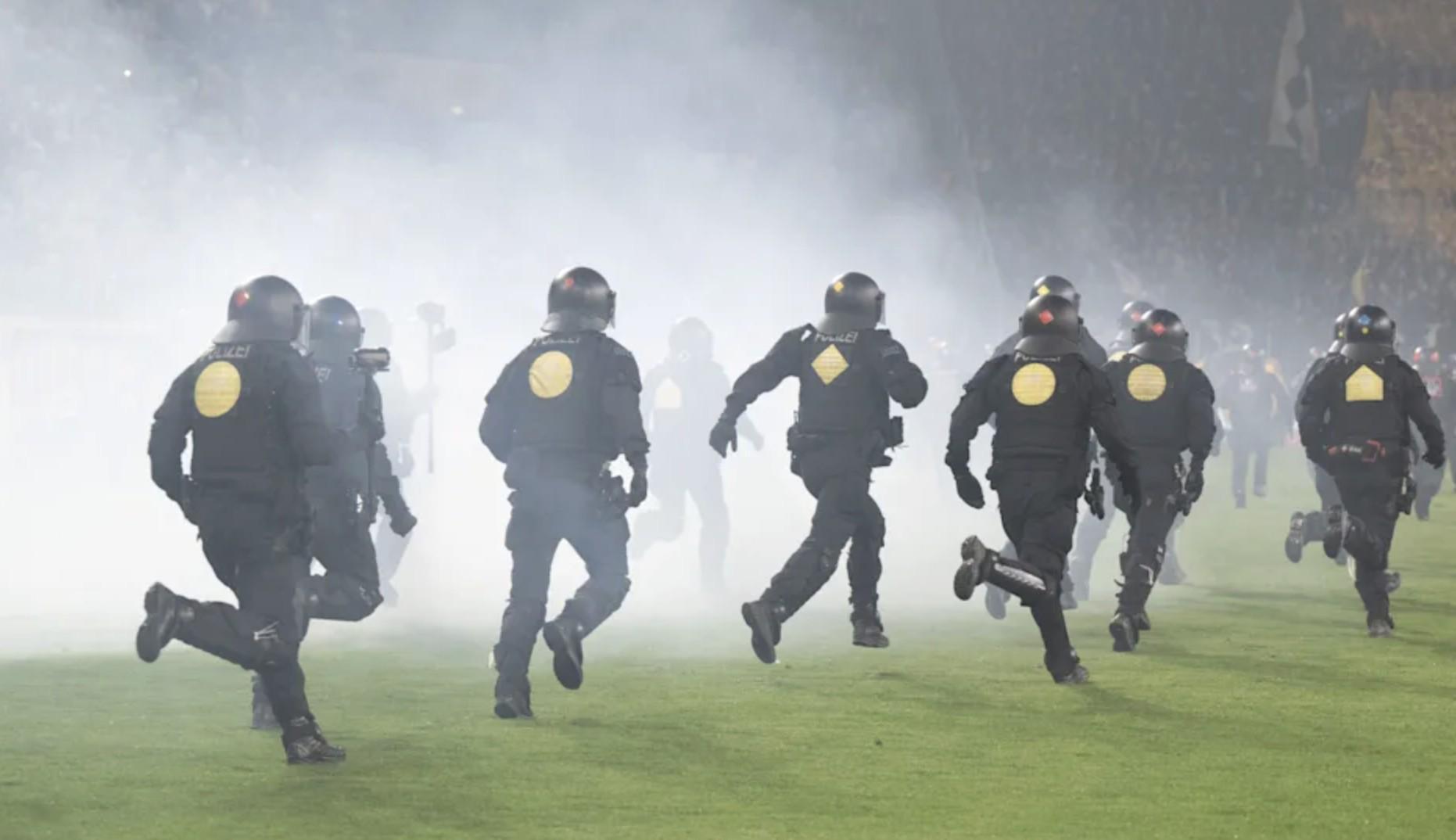 "我们立即启动应急预案,30名特警队员携带盾牌组成人墙分隔双方",警方发言人马尔科-拉斯克透露,"同时封锁所有出入口防止事态扩散,整个球场被置于严密管控之下"。