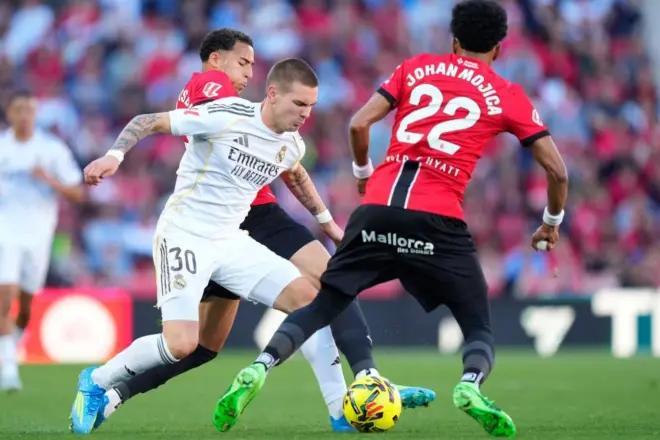 对阵马略卡的比赛中,阿韦洛亚在第76分钟做出了换人调整,用马斯坦托诺替下了卜拉欣,寄希望于他能成为改变战局的关键人物。然而,马斯坦托诺上场后的表现并未能如教练所愿。在一次停球处理上,他显得有些仓促,球趟得稍大,随即与对方球员达德尔发生了身体接触,并被主裁判何塞-桑切斯判定为犯规。尽管这次犯规的判罚并无太大争议,但主裁判随即向马斯坦托诺出示的黄牌,却让他本赛季的联赛黄牌数达到了5张,从而触发了停赛条款。这意味着,在接下来的皇马主场对阵赫罗纳的比赛中,马斯坦托诺将只能作壁上观,无法为球队贡献自己的力量。