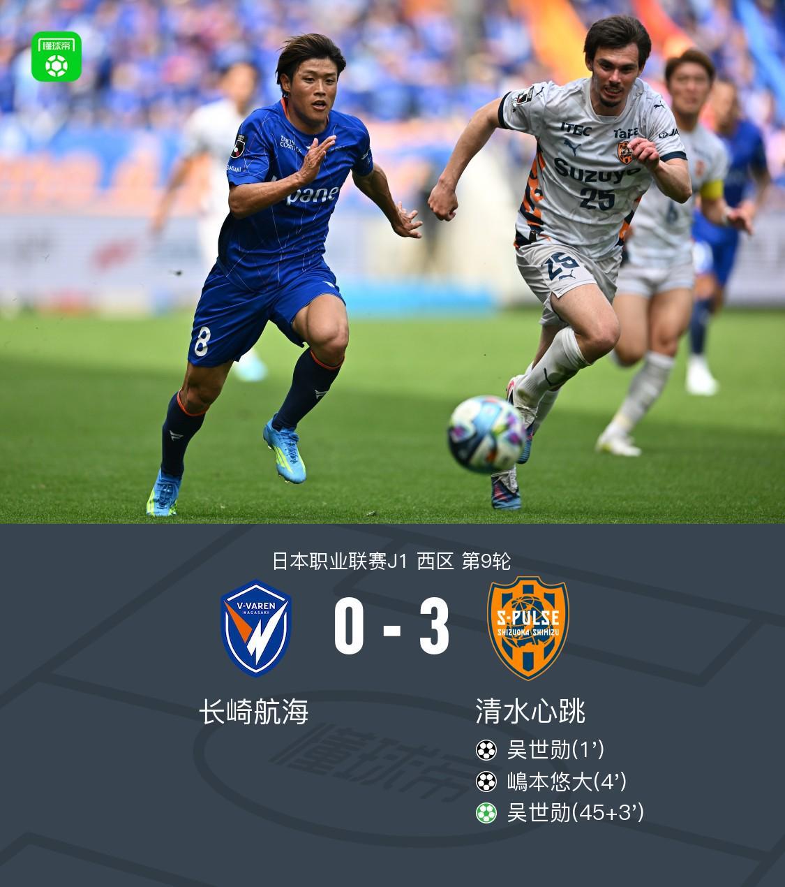 北京时间4月5日,日本职业联赛J1西区迎来第9轮焦点对决,长崎航海坐镇主场迎战清水心跳。凭借吴世勋的梅开二度与嶋本悠大的头槌建功,清水心跳以3-0完胜对手,全取三分。