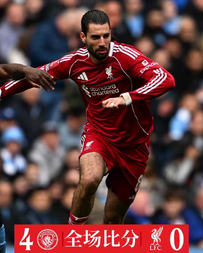从数据上看,曼城全场控球率达到了49%,射门数11次,其中7次射正,高效地转化为了4粒进球。每一次进攻都条理清晰、直击要害,将传控足球的杀伤力展现得淋漓尽致。而利物浦的溃败则在于中场失控和防线崩塌,缺少了远藤航等防守悍将的利物浦中场拦截形同虚设。索博斯洛伊、琼斯与赫拉芬贝赫三人组既无法有效阻断曼城的传球线路,也难以组织起有威胁的反击推进。防线更是灾难级表现,队长范戴克状态低迷,第37分钟在禁区内鲁莽踢倒奥赖利,亲手送上了致命点球,成为了比赛的转折点,球队随后的比赛也确实受到了失球的影响,防线的问题被进一步放大。