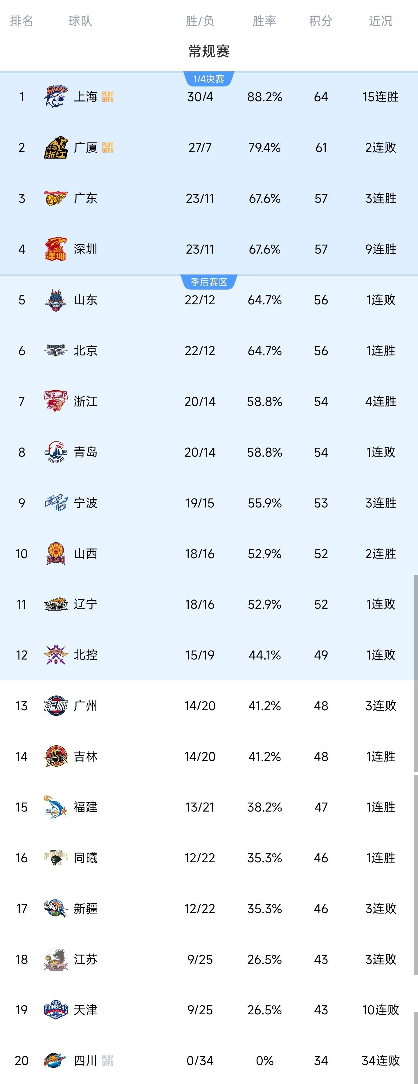 CBA积分榜新动态:上海稳居榜首,山东面临严峻挑战
