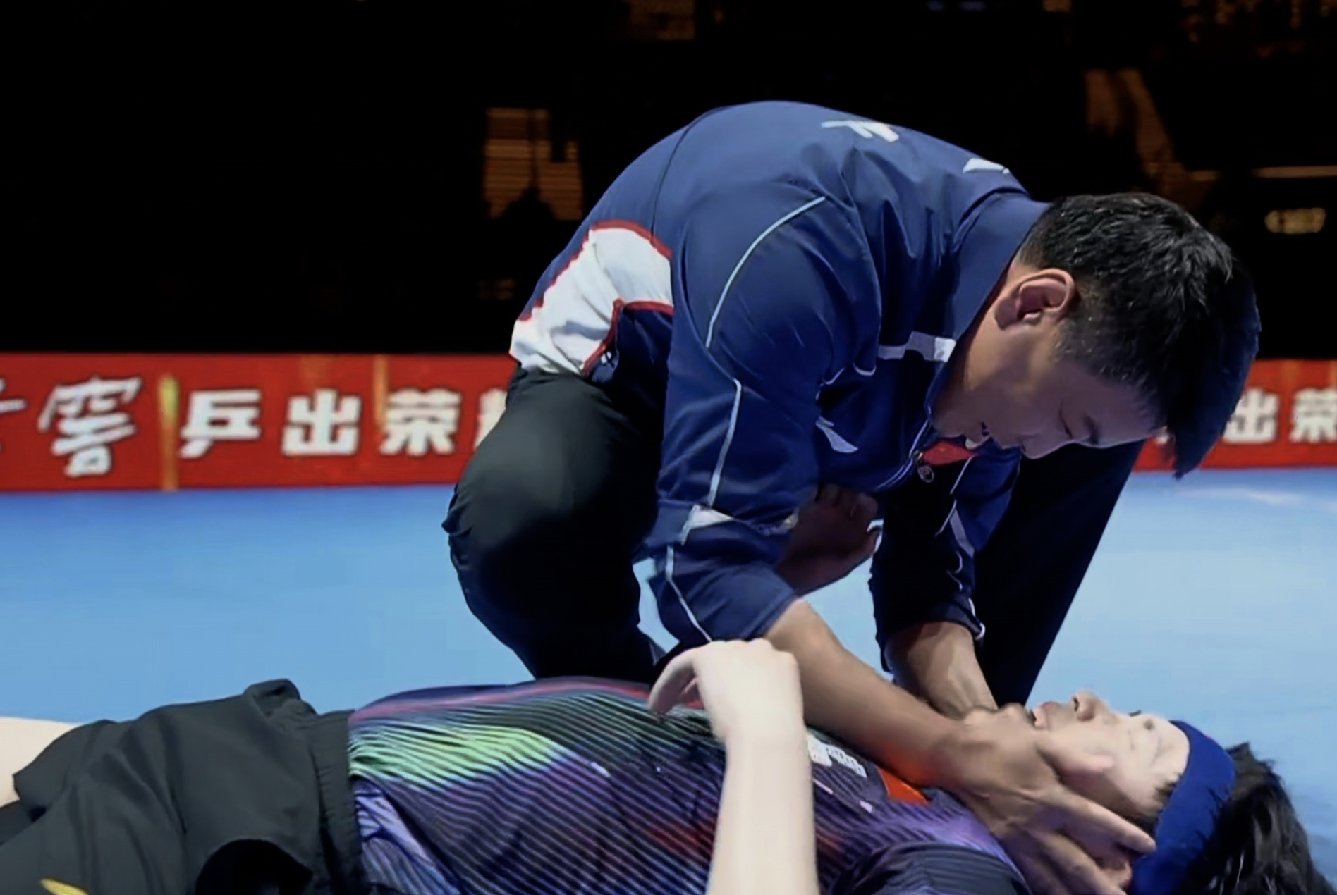 当比赛结束的哨声响起,锁定冠军的那一刻,王楚钦彻底释放了自己的情绪。他没有进行过多的庆祝动作,而是直接倒在地上,用捂脸的方式尽情宣泄着内心的压力与喜悦。教练王皓也激动得难以自持,他迅速冲到场内,双手用力晃动着王楚钦的身体,为爱徒的出色表现感到无比骄傲和高兴。