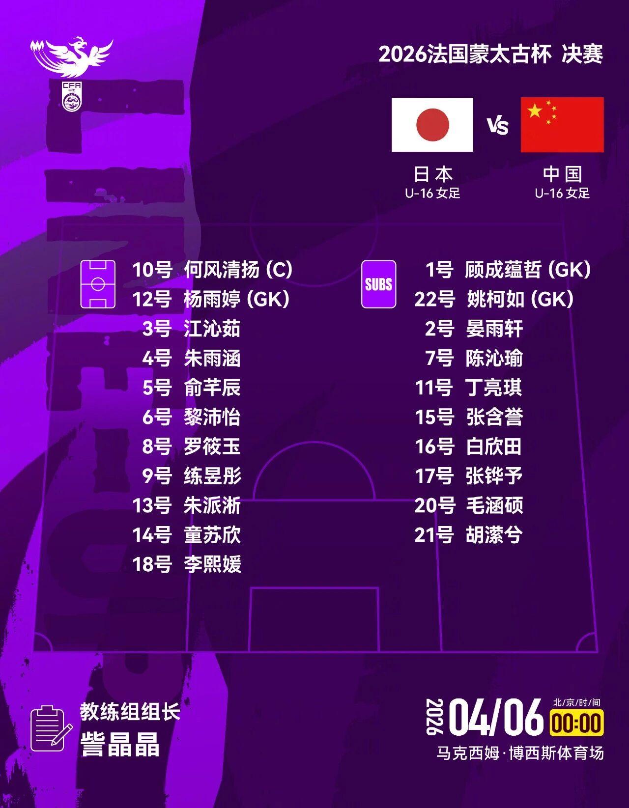 回顾此前的赛事历程,中国女足U16的表现可圈可点,取得了2胜1平的出色战绩,凭借这一成绩连续两年成功与日本女足U16会师决赛。本场决赛的首发阵容中,何风清扬、朱派淅、练昱彤等球员登场亮相,她们承载着众多球迷的期望踏上了决赛的征程。