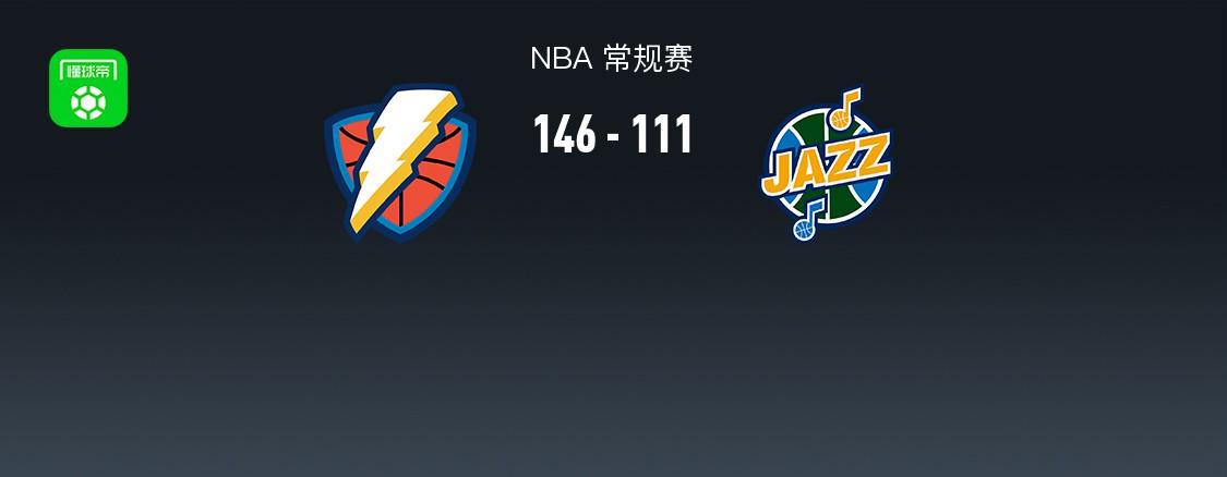 NBA战报:雷霆146-111大胜爵士豪取五连胜,森萨博空砍高分难救主