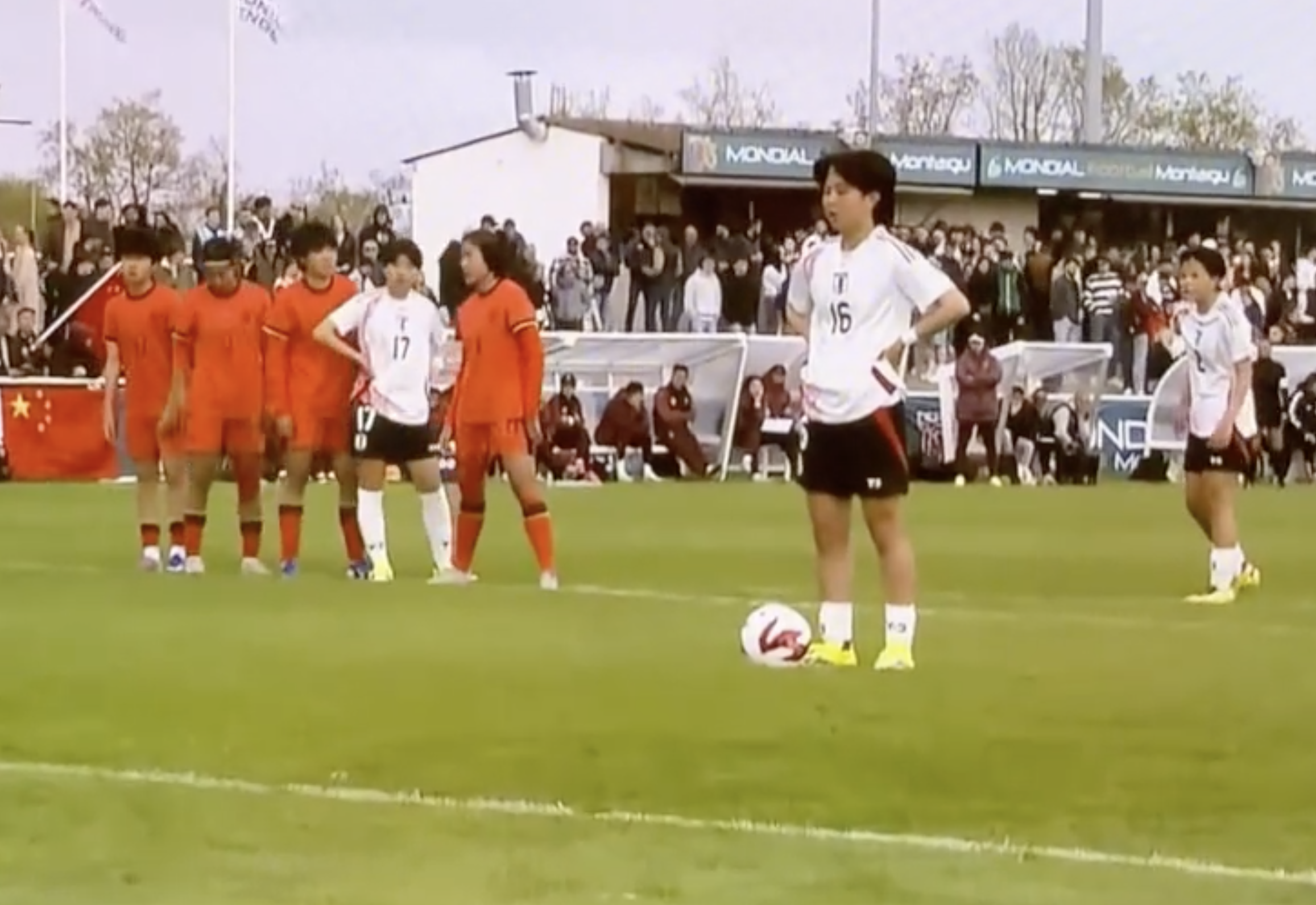 比赛进行到第10分钟,场上出现了转折点。中国队的童苏欣在禁区内不慎放倒了对方球员,裁判果断判罚点球。日本队抓住机会,将点球稳稳罚进,中国队就此0 - 1落后,陷入了不利的局面。