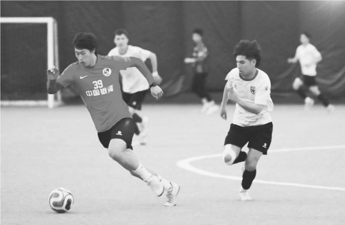 图片展示:通辽队身着白色球衣,正与沈阳当地一支业余球队进行激烈的教学对抗赛。 拍摄者:本报资深记者 卢立业