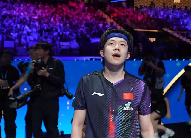 与女单冠军奖杯不同,男单冠军奖杯埃文斯杯上有一个打球者形象的“锅盖”,这使得王楚钦在唱国歌时无法像孙颖莎那样用奖杯装玩偶,只能无奈地将奖杯放在脚下。