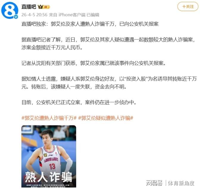 最后插播条脑洞大开的预测:据某不愿透露姓名的圈内人爆料,郭艾伦团队正在策划"反诈宣传企划",拟邀公安部门合作打造系列短视频,广告词都想好了:"球场过人我擅长,但想骗我钱?你得先过我这道防守!"这波操作若能成行,或许能开创运动员社会价值转型的新范式。