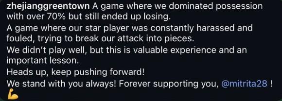 米特里策的妻子阿莱西亚在社交媒体上深情写道:“昨晚的比赛,我们虽然掌控了超过70%的控球率,但最终还是遗憾落败。在这场激烈的对抗中,我们的核心球员米特里策不断受到对手的侵犯和战术性的犯规阻挠。他拼尽全力,试图冲破对方的严密防守,为球队撕开进攻的缺口。尽管比赛结果不尽如人意,但我认为这是一次对我们来说极为宝贵的经历,也是一堂重要的课。我相信,我们会从这次失败中汲取教训,振作起来,继续勇往直前!我们全家都会永远支持你,永远为你加油鼓劲!(米特里策社媒动态) ”
