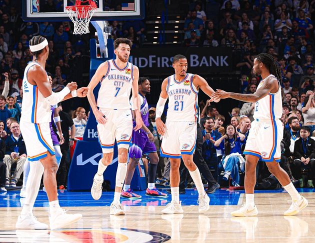 领跑西部的雷霆队坐镇主场迎战垫底的爵士队,展现恐怖统治力。首节即轰出40-25的攻击波,单节建立15分优势。次节亚历山大率队持续施压,半场分差突破20分。易边后爵士进攻毫无起色,雷霆第三节将分差扩大至30分以上,最终以146-111血洗对手。此役过后,雷霆豪取5连胜,以62胜16负的战绩稳居榜首,领先次席马刺3个胜场。在常规赛仅剩4场的情况下,雷霆锁定西部第一乃至联盟头名几成定局,其攻防效率均位列联盟前三的硬实力令人信服。