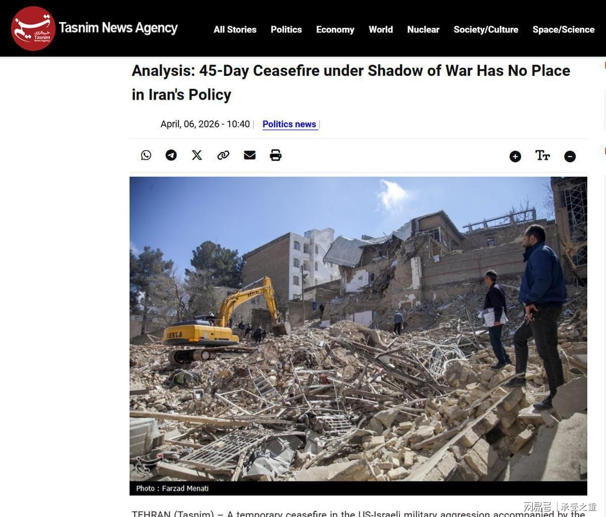 塔斯尼姆通讯社进一步指出,拥有美以背景的媒体Axios在4月6日的报道中提及,调解方正努力推动一场为期45天的临时停火,期间将进行结束冲突的实质性谈判。但伊朗认为,这本质上意味着战争的阴影仍将笼罩,和平遥不可及。