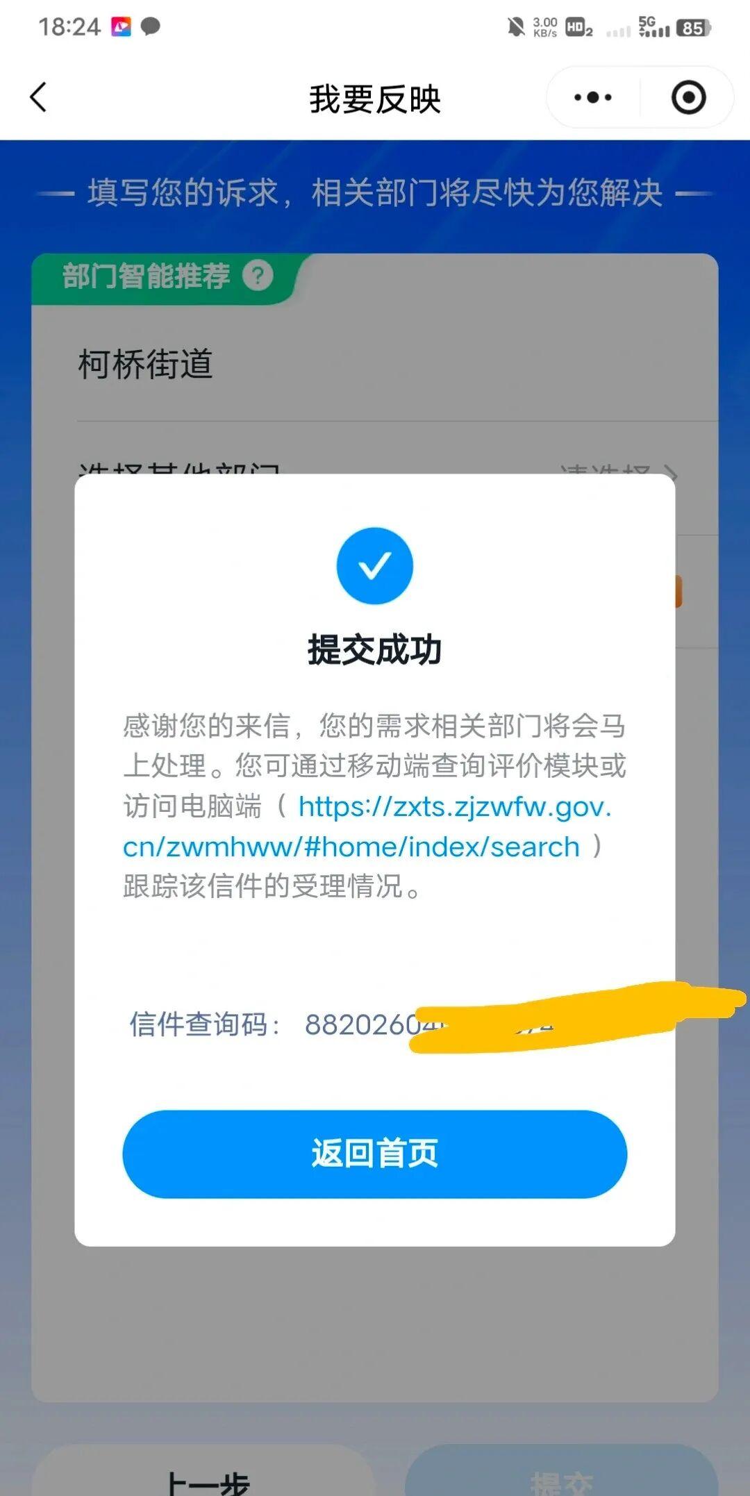 最后,该网友还晒出了自己向柯桥街道进行举报的截图,以表达对此事的不满和寻求公正处理。