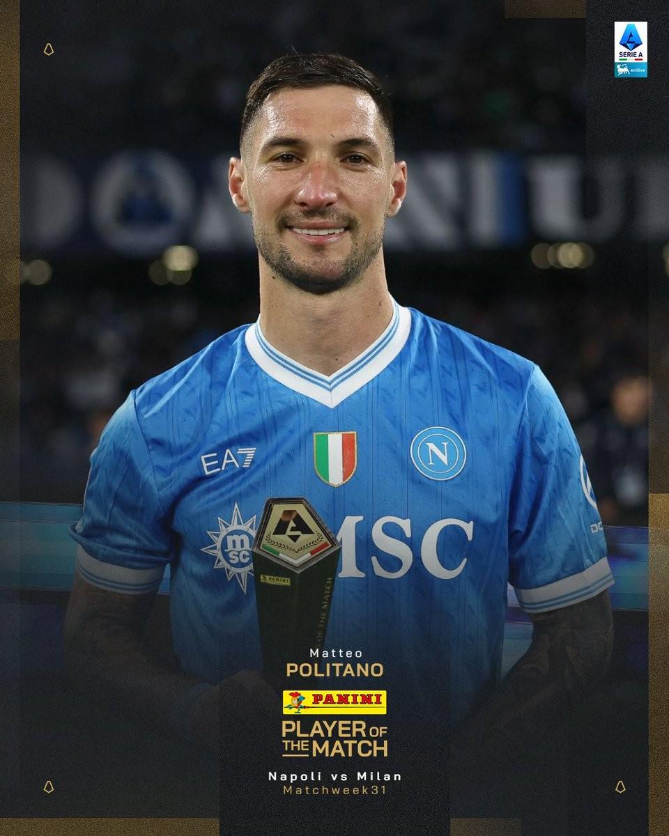 在意甲第31轮的焦点对决中,那不勒斯坐镇主场以1-0的比分力克劲敌米兰。本场比赛,替补出战的波利塔诺成为关键先生,他攻入全场唯一进球,并因此荣膺意甲官方评选的全场最佳球员。