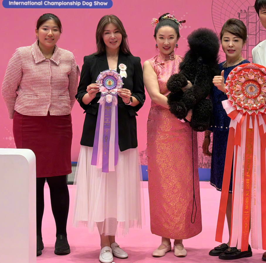 霍思燕泰国犬赛再夺魁,粉色旗袍尽显东方韵味,美貌与实力并存!