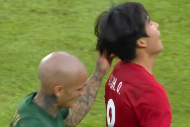 在这场焦点战中,浙江队的外援米特里策两次拉扯李镇全的头发,这一不理智行为最终导致他被裁判出示红牌罚下,此事件迅速在网络上引发热议,球迷们纷纷对此发表看法。