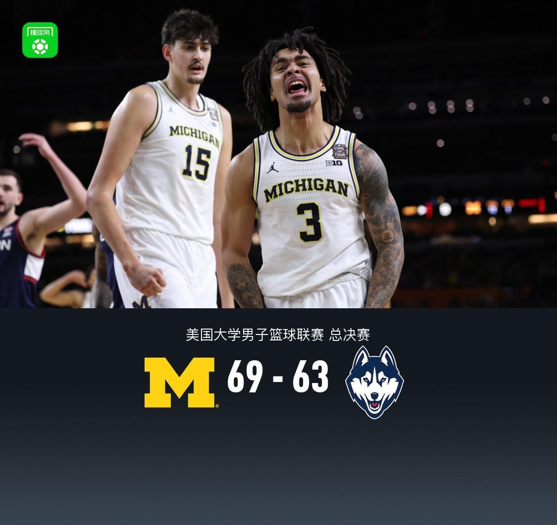 密歇根大学69-63力克康涅狄格,夺NCAA男篮冠军,卡多19分伦德堡13分